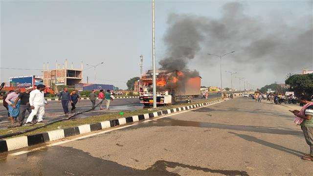 वाराणसी,उजाला सिटी।चलती कंटेनर में लगी आग ड्राइवर खलासी कूद कर बचाए जान बाबूसराय (भदोही) वाराणसी से खाली कर कंटेनर लेकर सूरत जा रहा ट्रक NL01AF9581 सोमवार को बाबू सराय बाजार पुल से उतरते ही अचानक शॉर्ट सर्किट का शिकार हो गया। देखते ही देखते कंटेनर में भीषण आग लग गई। आग की लपटें इतनी तेज थीं कि वाहन कुछ ही मिनटों में खाक हो गया।