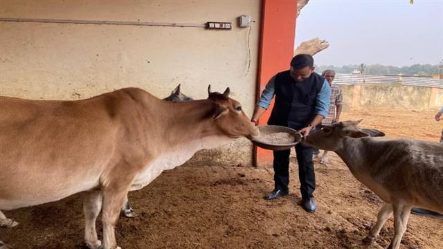 उन्होंने अपने हाथों से गायों को चारा खिलाकर किया गो सेवा, किसानों से खेतों में पराली न जलाने की अपील की