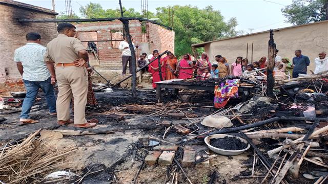 आग लगने के कारण वनवासी बस्ती में रहा अफ़रा- का माहौलतफ़री