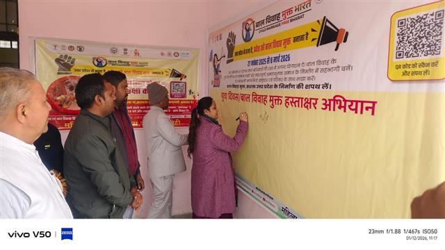 भदोही,उजाला सिटी। निदेशालय महिला कल्याण उत्तर प्रदेश, लखनऊ के आदेश के क्रम में जनपद भदोही में जिलाधिकारी महोदय, मुख्य विकास अधिकारी महोदय एवं जिला विधिक सेवा प्राधिकरण भदोही के निर्देशानुसार तथा जिला प्रोबेशन अधिकारी शत्रुधन कन्नौजिया के कुशल मार्गदर्शन में आज दिनांक 12 जनवरी 2026 को महिला कल्याण विभाग की टीम द्वारा विकास खण्ड डीघ की ग्राम पंचायत चकमन्दाता में बाल विवाह मुक्त भारत 100 दिवसीय अभियान के अंतर्गत जागरूकता कार्यक्रम का सफल आयोजन किया गया।