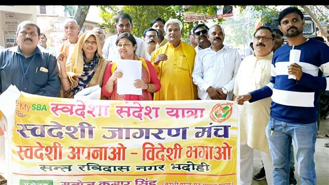 भदोही,उजाला सिटी। स्वदेशी वस्तुओं के उपयोग और आमजन को स्वदेशी आंदोलन से जोड़ने के उद्देश्य से स्वदेशी जागरण मंच के तत्वावधान में गुरुवार को स्वदेशी जनजागरण यात्रा निकाली गई। यह यात्रा राजपुर चौराहे से प्रारंभ होकर नगर के विभिन्न स्थानों से होती हुई तहसील भदोही परिसर पहुंची, जहां उपस्थित नागरिकों और अधिवक्ताओं से स्वदेशी वस्तुओं के उपयोग को लेकर संवाद किया गया।
