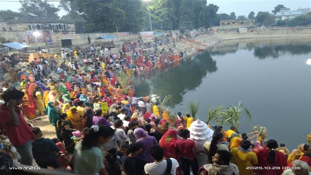 भदोही,उजाला सिटी। मंगलवार को उदीयमान सूर्य को अर्घ्य देने के साथ ही चार दिवसीय छठ पूजा (डाला छठ) का समापन हुआ। भोर से ही व्रती महिलाएं परिवार के सदस्यों के साथ नदी घाटों पर पहुंचीं। नदी के जल में खड़े होकर उगते सूर्य को अर्घ्य दिया और विधिवत पूजन-अर्चन किया। इसी के साथ ही 36 घंटे के निर्जला व्रत का समापन हुआ। इस दौरान जनपद के विभिन्न गंगा घाटों व पवित्र जलाशयों के घाटों पर हजारों की संख्या में भीड़ जुटी। त्याग, विश्वास, सुख व समृद्धि के महापर्व डाला छठ पर नदियों के तट पर मंगलवार की भोर में श्रद्धालुओं का हुजूम उमड़ा। कार्तिक शुक्ल पक्ष की सप्तमी तिथि पर गंगा-यमुना व संगम तट पर निर्जला व्रत रखने वाली हजारों महिलाएं परिवार के सदस्यों के साथ पहुंचीं। घाट पर स्वयं के चिह्नित स्थान पर गन्ने के मंडप बनाकर विधि-विधान से पूजन किया। सुहागिन महिलाओं ने एक-दूसरे को सौभाग्य के प्रतीक सिंदूर लगाया। व्रती महिलाओं ने पानी में खड़े होकर सूर्य को अर्घ्य दिया और पुत्र, परिवार और कुल की कुशलता के लिए कामना की। छठ महापर्व के तीसरे दिन सोमवार को संध्या अर्घ्य के साथ पूजा अर्चना की गई। श्रद्धालुओं ने गंगा घाटों व सरोवरों के किनारों पर पहुंचकर श्रद्धा के साथ भगवान सूर्य देव को अर्घ्य समर्पित किए और छठ मैया की विधि विधान से पूजा अर्चना की गई। बच्चों में त्येाहार को लेकर उत्साह था। युवा और पुरुष भी त्योहार की खुशियों में सराबोर थे। सोमवार को छठ पूर्व के तीसरे दिन श्रद्धालु़ और व्रती महिलाएं परिवार के साथ सूर्यास्त से पहले गंगा व जलाशयों के तट पर पहुंचे। रास्ते में महिलाएं छठ मैया के गीत गाते हुए यमुना नदी पर पहुंची। व्रती महिलाओं ने सूर्य देव की ओर मुख करके डूबते हुए सूर्य को अर्घ्य देकर पांच बार परिक्रमा की छठ मइया के गीतों से गंगा व पवित्र सरोवरों तट गूंज उठे। हाथ में गन्ना और प्रसाद की थाली थी। जबकि पुरुष सिर पर बांस की टोकरी में सूप, फल, सब्जी व पूजन की अन्य सामग्री लेकर साथ चल रहे थे। घाट पहुंचने पर व्रती महिलाएं स्वयं की बनाई वेदी के पास बैठकर उसके चारों ओर गन्ने का मंडप तैयार किया। मंडप के अंदर बैठकर छठ मइया का विधिवत पूजन किया। घाट पर ढोल-नगाड़े की थाप पर युवाओं के साथ बुजुर्ग भी थिरके। बच्चों ने पटाखे जलाकर खुशी मनाई। शनिवार को नहाय-खाय से छठ पर्व का आरंभ हुआ था। खरना पर रविवार को डाला छठ का 36 घंटे के निर्जला व्रत शुरू हुआ था। कार्तिक शुक्ल पक्ष की सप्तमी तिथि पर मंगलवार की सुबह डाला छठ व्रत का व्रती महिलाओं ने पारण ठेकुआ खाकर किया।